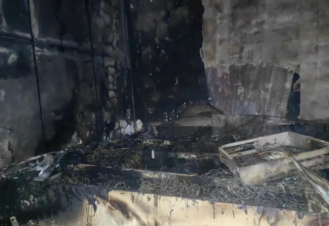 火災(zāi)造成起火住戶臥室內(nèi)床鋪等家具燒損