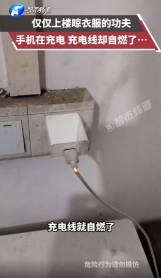 發現手機充電線自燃了